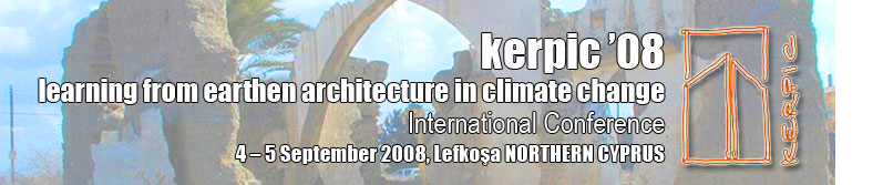 We are pleased to invite you to the International Conference, ‘Kerpic ’08: Learning from earthen architecture in climate-change’. The conference will be held at Cyprus International University, in Lefkoşa - Northern Cyprus, on the 4th and 5th of September 2008. The focus of the conference has evolved from quality of life in earthen architecture, environmental and health care, towards disaster prevention. We hope that it will bring together the related disciplines of architects and engineers, on material, construction, marketing and environmental science, to create database, technology watch and strategy.